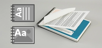 Qu'est-ce que les paramètres ? Rien de plus que la façon dont vous souhaitez que nous imprimions vos fichiers. C'est-à-dire, le type et le format du papier (A4, A3, A5 ; 80 grammes, 100 grammes, 300 grammes, etc.), le type d'impression (recto ou recto-verso), le nombre de pages par face, l'orientation (automatique, portrait, paysage), la finition (groupée, agrafée, reliée, plastifiée, etc.), le type de reliure, et si vous choisissez une reliure spirale, vous pourrez choisir la couleur des spirales, de la couverture et du dos parmi une large gamme de nuances.